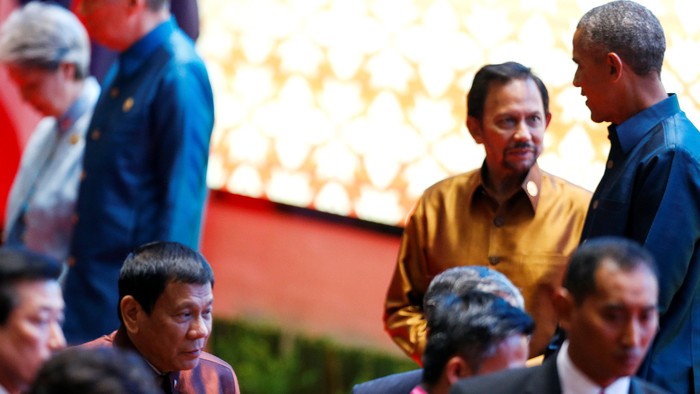 Kendati demikian, keduanya akhir bertemu, berjabat tangan dan mengobrol singkat di sela-sela acara makan malam dalam KTT ASEAN di Laos, pekan ini. Otoritas Filipina menyebut, keduanya berjabat tangan dan mengobrol singkat selama 2 menit, sebelum duduk di kursi masing-masing.