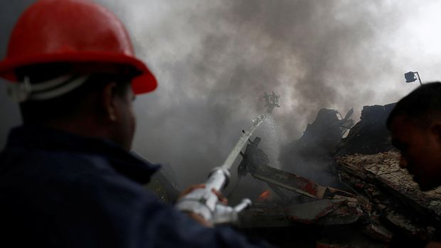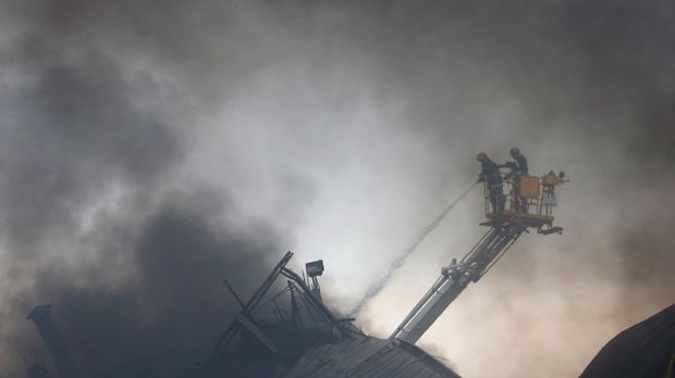 Petugas memadamkan api di pabrik pengemasan Bangladesh (REUTERS/Mohammad Ponir Hossain)