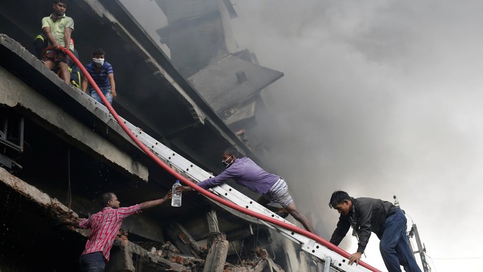 Besarnya kebakaran membuat orang-orang kesulitan untuk menyelamatkan diri keluar gedung. Ratusan petugas pemadam kebakaran dikerahkan ke lokasi untuk memadamkan api yang terus berkobar. "Apinya masih belum bisa dikendalikan," tutur Inspektur Kepolisian Sirajul Islam kepada AFP.