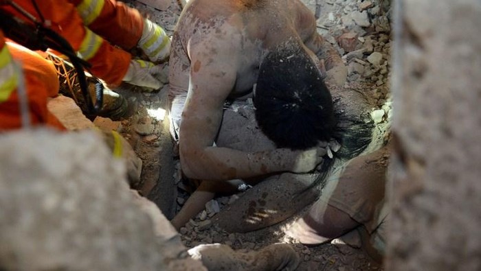 Sang ayah yang diketahui berusia 26 tahun dan bekerja di pabrik sepatu ini, ditemukan tewas tertimpa pilar semen tebal. Saat ditemukan, jasad sang ayah dalam posisi meringkuk di atas putrinya yang masih hidup.