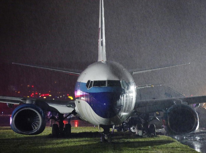 Dituturkan juru bicara Otoritas Penerbangan Federal (FAA), Jim Peters, pesawat jenis Boeing 737 ini melakukan pendaratan di Bandara LaGuardia di tengah hujan, dan kemudian tergelincir keluar dari landasan pada Kamis (27/10) malam, sekitar pukul 19.40 waktu setempat.
