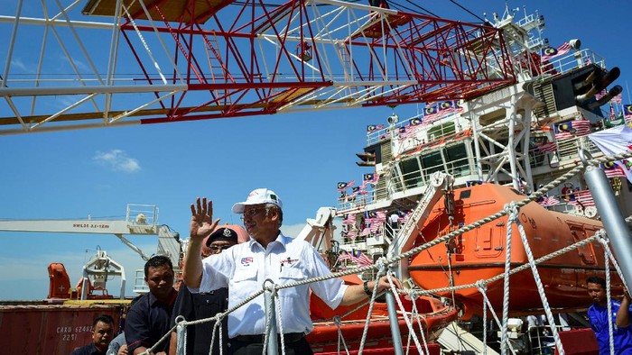 PM Najib Razak saat melepas kapal bantuan Malaysia untuk Rohingya (REUTERS/Joshua Paul)
