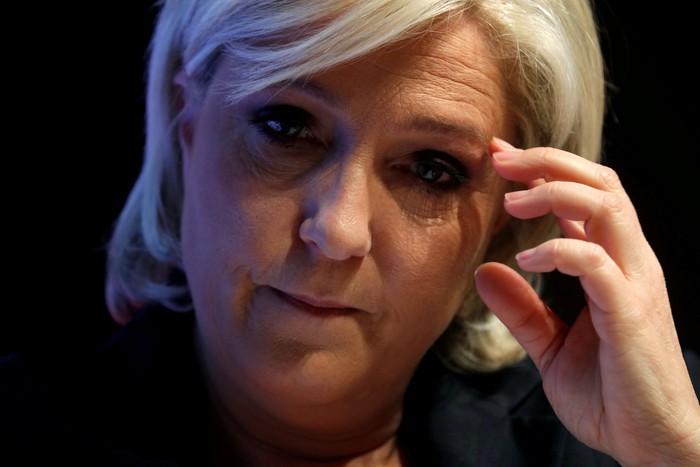 CNN memberitakan Le Pen telah memberitahu para pendukungnya bila dia telah menelepon Macron untuk memberikan selamat. Le Pen mengatakan bila Prancis telah memilih kontinuitas. Dalam pidatonya, dia menyebut partainya, National Front, harus memulai kampanye baru setelah hasil tersebut.