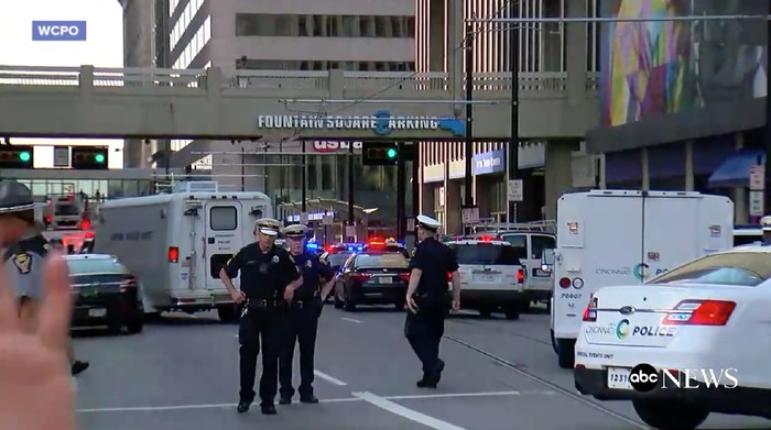 Petugas kepolisian merespon panggilan melalui layanan darurat 911 pada sekitar pukul 09.10 waktu setempat. Kepala Kepolisian Cincinnati Eliot Isaac menyatakan lokasi penembakan di Fifth Third Bank di dekat Fountain Square.