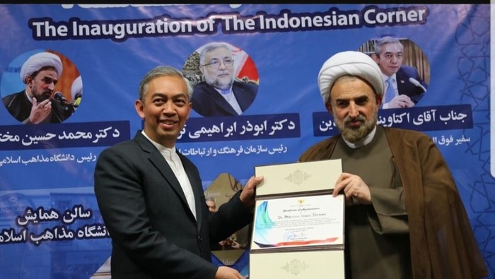 "Terbentuknya Pojok Indonesia (Indonesian corner) di Iran sebagai bukti adanya dialog peradaban yang tumbuh dan berkembang, Indonesia dan Iran, keduanya memiliki peradaban yang sangat tinggi. Iran sangat mengapresiasi Indonesia sebagai negara dengan populasi muslim terbesar di dunia, sebaliknya Iran memiliki latar belakang peradaban yang juga dikenal dunia," demikian disampaikan Duta Besar RI untuk Iran, Octavino Alimudin dalam pembukaan Pojok Indonesia (Indonesian Corner) di University of Islamic Denominations, Teheran pada Minggu (10/3) waktu setempat.