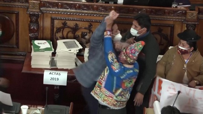 Tak hanya anggota parlemen laki-laki, dalam video yang beredar, tampak pula perkelahian antar legislator perempuan. Kericuhan di gedung parlemen itu dipicu oleh perdebatan soal penangkapan mantan Presiden sementara Bolivia, Jeanine Anez.