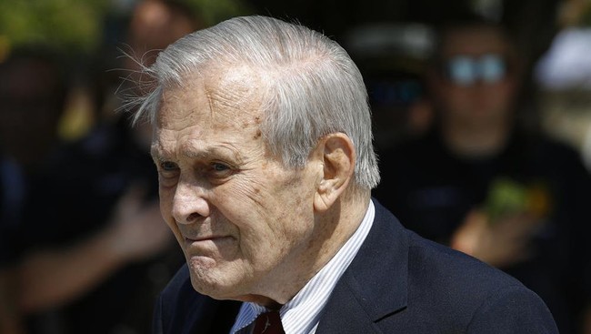 Mantan Menteri Pertahanan Amerika Serikat (AS), Donald Rumsfeld, meninggal dunia dalam usia 88 tahun. Semasa hidup, Rumsfeld dikenal sebagai sosok yang membawa AS ke dalam perang di Irak dan Afghanistan.