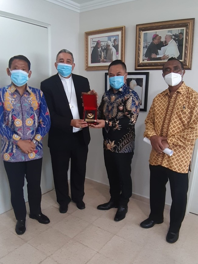 "Saya menyampaikan kepada Uskup Agung bahwa Indonesia menjunjung tinggi perbedaan dan keberagaman. Negara Indonesia menjamin kebebasan beragama dalam Konstitusi (Pasal 29 UUD 1945) kepada enam agama di Indonesia yang diakui Pemerintah RI, Islam, Kristen Protestan, Roma Katolik, Hindu, Buddha, dan Konghucu," kata Sukmo Harsono.