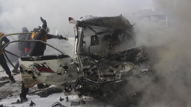 Para penyerang disebut menargetkan satu unit kendaraan yang hendak pulang dari patroli. Seorang wartawan AFP melihat adanya ledakan bom di sekitar Jalan Idlib-Bennish.