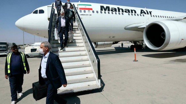 Maskapai Mahan Air diketahui sebelumnya mengoperasikan dua penerbangan komersial setiap pekan antara Mashhad dan Kabul.