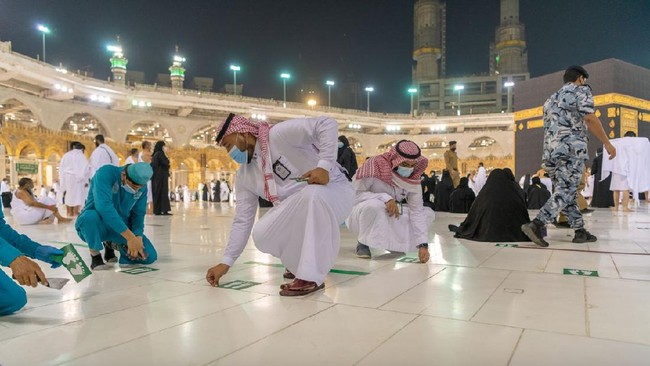 Pemerintah Arab Saudi mulai hari ini melonggarkan pembatasan yang selama ini berlaku demi mencegah virus COVID-19. Termasuk aturan jaga jarak di Masjidil Haram dan Masjid Nabawi.