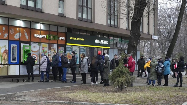 Dikutip dari Al Jazeera, Kamis (24/2/2022), antrean panjang di ATM terpantau di Mariupol yang ada di sisi timur Ukraina. Warga juga mengantre di SPBU untuk berjaga-jaga.