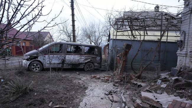 Saksi mata mengatakan mereka melihat mayat yang tampak seperti dua tentara Rusia yang tewas di dekat truk, tetapi militer Ukraina, yang sedang memeriksa mobil yang rusak itu, tidak mengizinkan AFP untuk mendekat.
