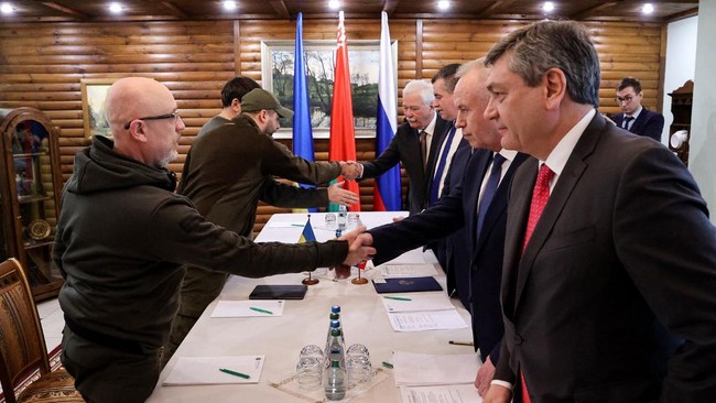 Dilansir dari AFP, perundingan kedua antara pejabat Rusia dan Ukraina ini awalnya disebut untuk membahas gencatan senjata. Penasihat Presiden Ukraina Volodymyr Zelensky, Mikhailo Podolyak, memposting foto perwakilan Rusia dan Ukraina di Twitter.