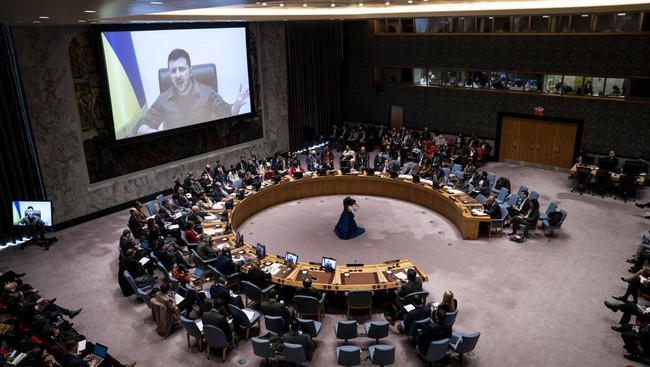 Presiden Ukraina Volodymyr Zelensky menyampaikan apa yang disebutnya sebagai kekejaman pasukan Rusia, saat berpidato di hadapan Dewan Keamanan Perserikatan Bangsa-bangsa (PBB). Zelensky menuduh tentara Rusia membunuh warga sipil tanpa pandang bulu 'hanya untuk kesenangan mereka'.