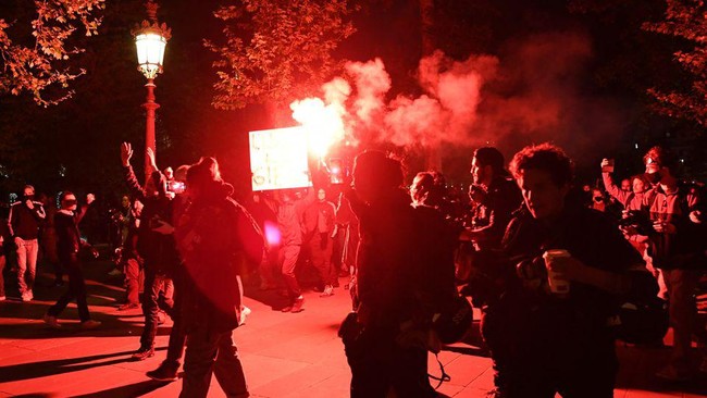 Seperti dilansir Reuters, Senin (25/4/2022), beberapa gambar yang diunggah ke media sosial Twitter menunjukkan bahwa para personel kepolisian berupaya membubarkan kerumunan demonstran, yang sebagian besar anak muda, yang berkumpul di pusat kawasan Chatelet untuk berunjuk rasa.