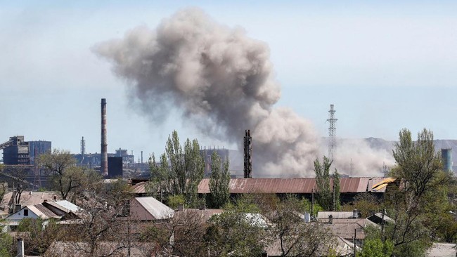 Otoritas Ukraina melaporkan pasukan militer Rusia menggempur pabrik baja di Mariupol, yang menurut pejabat lokal, menjadi tempat bersembunyi sedikitnya 100 warga sipil. Sementara para petempur terakhir Ukraina terus berjuang mempertahankan kota pelabuhan tersebut dari invasi pasukan Rusia.