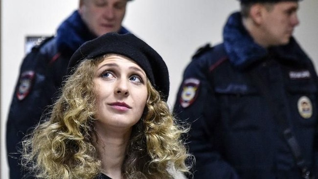 Pada September tahun lalu, Alyokhina dijatuhi hukuman satu tahun pembatasan pergerakan setelah ikut unjuk rasa mendukung pengkritik Kremlin, Alexei Navalny. Namun pada April tahun ini, otoritas Rusia mengubah hukumannya menjadi hukuman penjara.