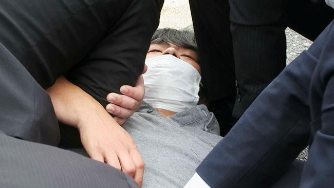 Tak lama setelah Abe tumbang, polisi menangkap seorang pria terkait penembakan Abe. Dilansir CNN, foto-foto penangkapan pria itu tersebar di media sosial. Pria yang belakangan diketahui sebagai eks angkatan laut Jepang itu tampak dipegangi oleh sejumlah petugas.