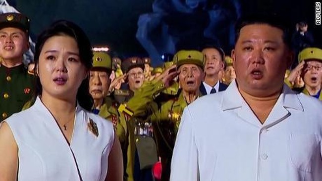 Dilansir CNN dan Reuters, Selasa (2/8/2022), momen Ri Sol-Ju meneteskan air mata itu tertangkap kamera. Ri Sol-Ju menangis persis di samping suaminya, Kim Jong-Un.