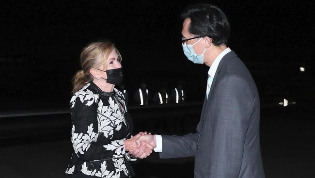 Seperti dilansir Reuters, Jumat (26/8/2022), Senator Marsha Blackburn yang merupakan anggota Komisi Perdagangan dan Angkatan Bersenjata Senat AS tiba di Bandara Songshan, Taipei, dengan menggunakan pesawat militer AS.