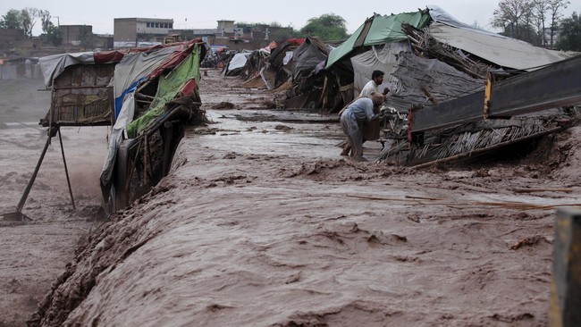 "Kota, desa dan panen terendam air. Saya merasa tingkat kehancuran ini belum pernah terjadi sebelumnya," imbuh PM Sharif.