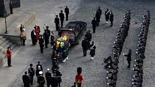 Sebelumnya, sebuah mobil jenazah yang membawa peti mati Ratu Elizabeth II telah tiba di Istana Holyroodhouse, kediaman Raja Inggris di ibu kota Skotlandia, Edinburgh, setelah perjalanan enam jam dari Kastil Balmoral.