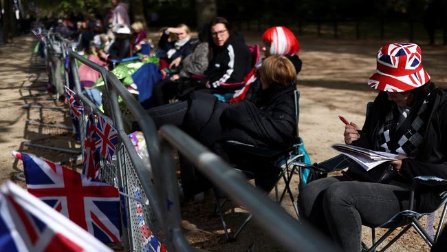 Kerumunan banyak orang memadati kota London, Inggris, sejak Minggu (18/9) malam hingga Senin (19/9) pagi demi menyaksikan langsung prosesi pemakaman Ratu Elizabeth II. Beberapa orang bahkan nekat berkemah demi mendapatkan barisan terdepan untuk menonton seremoni langka itu.