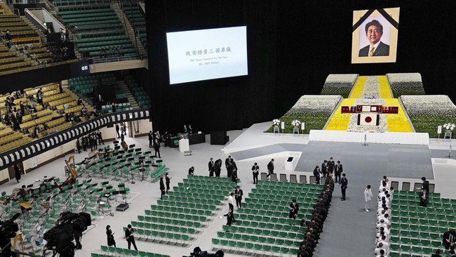 Jepang memulai pemakaman kenegaraan untuk mantan perdana menteri Shinzo Abe yang tewas dibunuh. Istri Abe, Akie membawa abu mendiang suaminya ke sebuah gedung di Tokyo, ibu kota Jepang, tempat ribuan pelayat berkumpul.