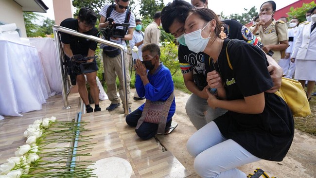 Duka mendalam menyelimuti para orang tua dari anak-anak yang tewas dalam pembantaian di sebuah tempat penitipan anak di Thailand. Satu demi satu, orang tua yang berduka datang untuk meletakkan sekuntum mawar putih di anak tangga gedung penitipan anak, di mana puluhan anak dibunuh pada Kamis (6/10) kemarin, salah satu pembunuhan massal terburuk di Thailand.