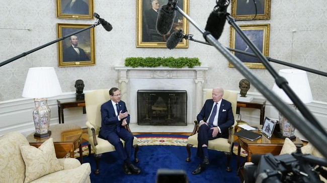 Presiden Amerika Serikat (AS) Joe Biden bertemu dengan Presiden Israel Isaac Herzog yang tengah berkunjung ke Washington DC. Dalam pertemuan di Gedung Putih, kedua pemimpin membahas sejumlah isu, mulai dari ancaman drone Iran yang digunakan pasukan Rusia dalam serangannya di Ukraina hingga isu Palestina.