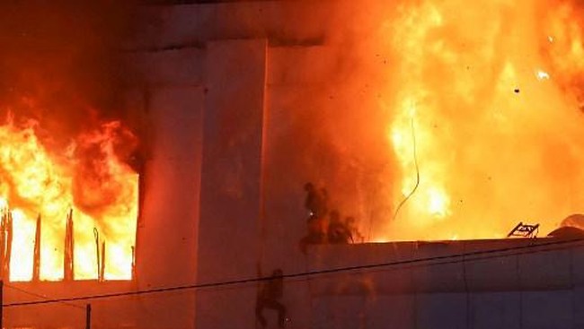 Gambar yang diperoleh AFP menunjukkan bangunan itu dilalap api, dengan petugas pemadam kebakaran berjuang untuk menahan kobaran api dan penyelamat berusaha menyelamatkan orang dari birai yang terbakar.