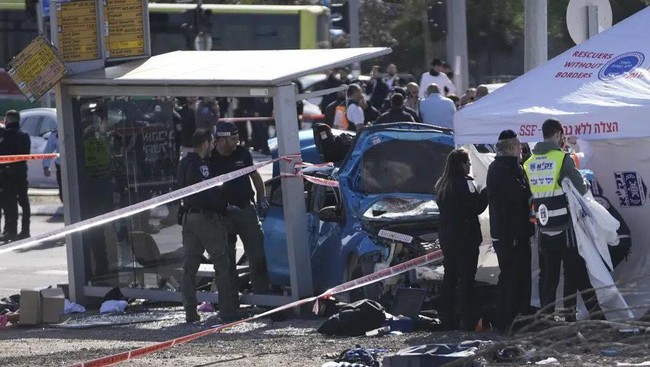 Disebutkan Kepolisian Israel bahwa mobil itu melaju 'dengan kecepatan tinggi' lalu menabrak ' orang-orang tidak bersalah yang sedang menunggu di halte bus.