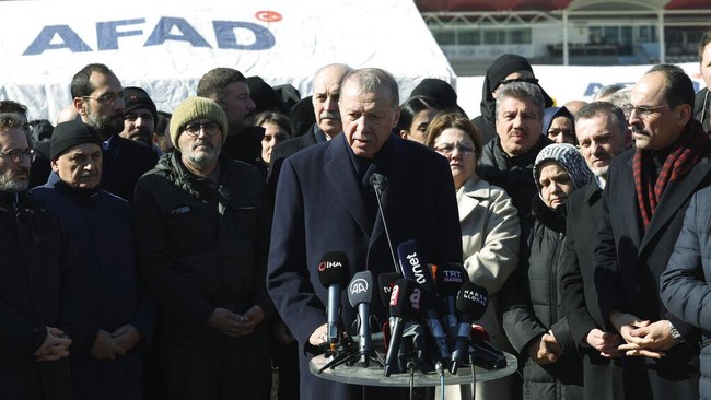 Dilansir kantor berita AFP, Selasa (28/2/2023), Erdogan, yang akan kembali maju dalam pemilihan presiden mendatang setelah dua dekade berkuasa, telah menerima banyak kritikan keras dari para korban gempa di Adiyaman di wilayah Turki tenggara.
