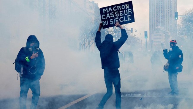 Unjuk rasa besar-besaran memprotes reformasi pensiun tengah digelar di Prancis. Sekitar 1,28 juta orang dilaporkan mogok kerja dan turun ke jalanan di berbagai wilayah Prancis untuk memprotes rencana Presiden Emmanuel Macron menaikkan batas usia pensiun menjadi 64 tahun.