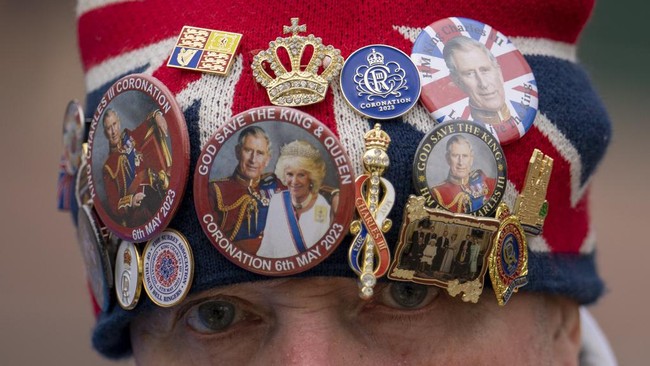 Para pendukung garis keras kerajaan berkemah untuk mengamankan tempat menonton prosesi penobatan Charles dari Westminster Abbey London pada hari Sabtu. Warga terlihat seperti sedang berpesta kostum, dengan banyak orang yang berdandan mewah dengan segala macam kostum lengkap dengan mahkota tiup di kepala mereka.