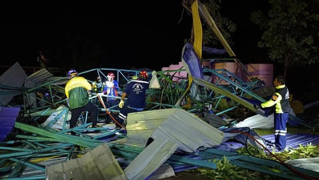 "Semua rumah rusak akibat badai, tapi arena ini benar-benar ambruk," tutur Wali Kota setempat, Kannika Intarakul, kepada televisi lokal ThaiPBS.