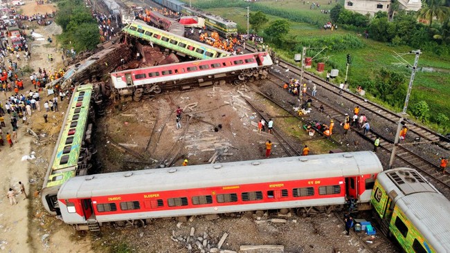 Dilansir kantor berita AFP, Sabtu (3/6/2023), kecelakaan kereta di negara bagian Odisha, India timur ini merupakan kecelakaan kereta api paling mematikan di negara itu dan juga terparah di dunia dalam lebih dari 20 tahun.