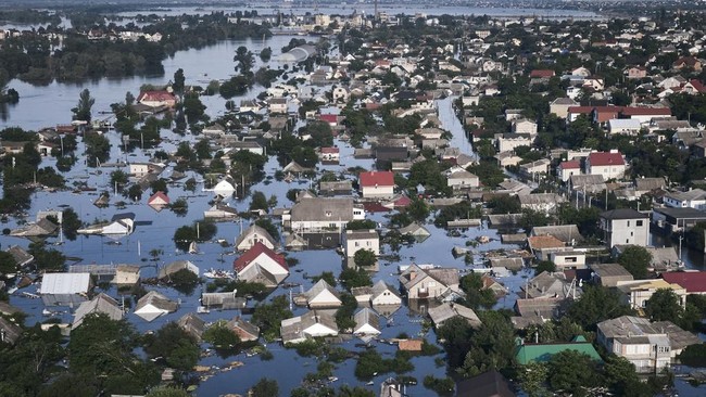 Jebolnya bendungan di dekat garis depan di Ukraina tersebut telah membanjiri puluhan desa dan bagian kota terdekat, memicu kekhawatiran akan bencana kemanusiaan. Para pejabat mengatakan ribuan orang harus meninggalkan rumah mereka dan banyak yang sudah melakukannya atas kemauan sendiri.