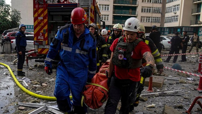 "Jenazah tiga orang, termasuk anak di bawah umur yang lahir pada 2008, telah ditemukan dari puing-puing. Di antara yang terluka adalah seorang anak yang lahir pada 2022," kata Kementerian Dalam Negeri Ukraina di Telegram.