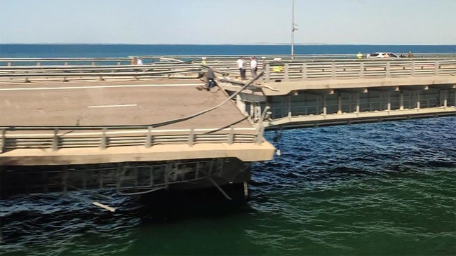 Seperti dilansir kantor berita Rusia, TASS, Selasa (18/7/2023), Komisi Antiterorisme Nasional Rusia mengklaim bahwa pasukan Ukraina dengan menggunakan dua drone telah melancarkan serangan teroris di Jembatan Crimea. Sedikitnya dua orang yang merupakan pasangan suami-istri dari Belgorod, Rusia, tewas.