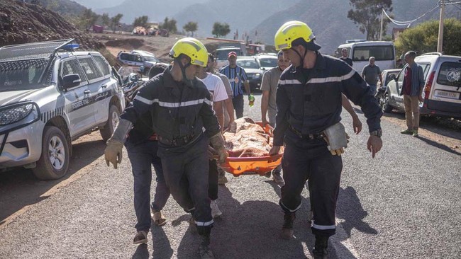 Gempa dengan magnituo (M) 6,8 ini terjadi Jumat malam waktu setempat di daerah pegunungan 72 kilometer barat daya kota wisata Marrakesh. Hal ini menurut laporan Survei Geologi AS.