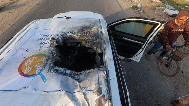 Seperti dilansir AFP, Kamis (4/4/2024), sedikitnya tujuh relawan kemanusiaan yang bekerja untuk badan amal bantuan pangan World Central Kitchen (WCK) tewas ketika serangan udara Israel menghantam konvoi kendaraan mereka di kota Deir al-Balah, Jalur Gaza, pada Senin (1/4) waktu setempat.