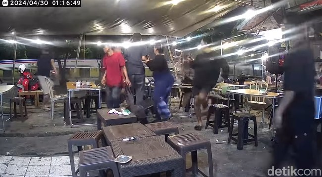 Peristiwa ini diketahui publik lewat video viral di media sosial. Mulanya, beberapa orang duduk di tenda warung sate taichan.