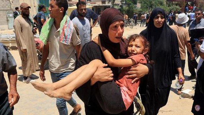 Gempuran Israel ke tenda pengungsian Al-Mawasi di Khan Younis, Gaza menewaskan 90 warga Palestina. Kementerian Kesehatan Gaza melaporkan, nyaris setengah korban perempuan dan anak-anak.