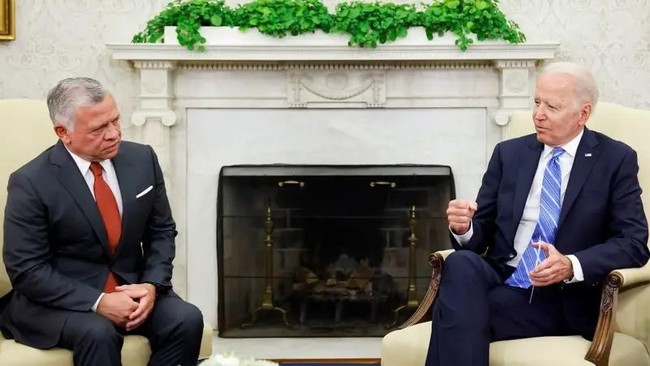 Presiden Amerika Serikat (AS) Joe Biden berbicara dengan Raja Yordania, Abdullah. Keduanya membahas dorongan untuk mencapai gencatan senjata dalam konflik Gaza.