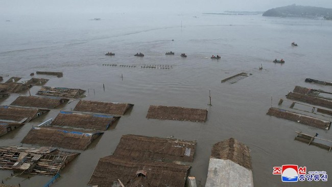 Pada hari Rabu, Pyongyang mengatakan banyak "gedung publik, fasilitas, jalan raya, dan rel kereta api, termasuk lebih dari 4.100 rumah tinggal dan hampir 3.000 hektar lahan pertanian" terendam banjir di wilayah Sinuiju dan Uiju.
