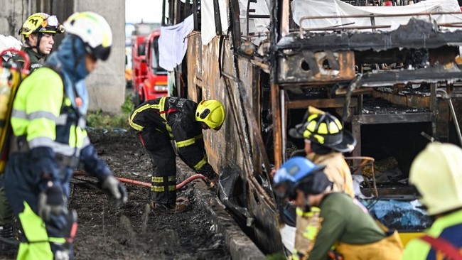 Benturan tersebut membuat bus yang menggunakan gas bertekanan itu langsung terbakar hebat. Tabrakan dengan pembatas jalanan itu disebut memicu kobaran api yang diawali pada tangki bahan bakar bus.