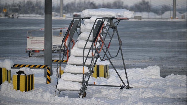 Dilansir AFP, Minggu (5/1/2025), landasan pacu lepas landas dan pendaratan perlu dibersihkan. Pihak bandara menyebut 'mencairkan es di pesawat juga lebih rumit dan lebih sulit.