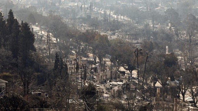 Dilansir AFP, Minggu (12/1/2025), kebakaran Palisades terus meluas pada hari Sabtu. Api terus bergerak ke arah timur menuju museum seni Getty Center dan ke utara menuju Lembah San Fernando yang padat penduduk.